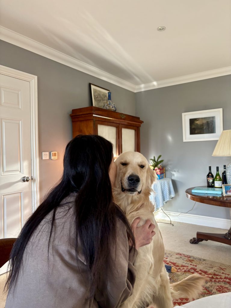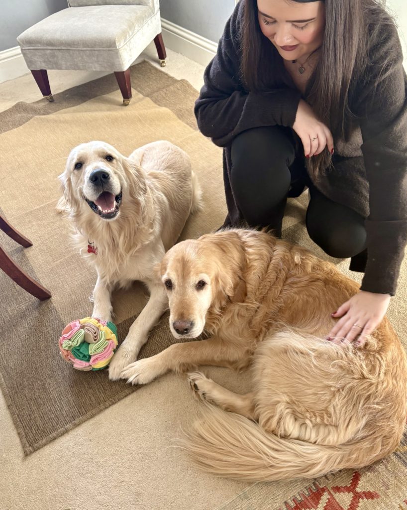 2人では怖いので2匹の犬達を